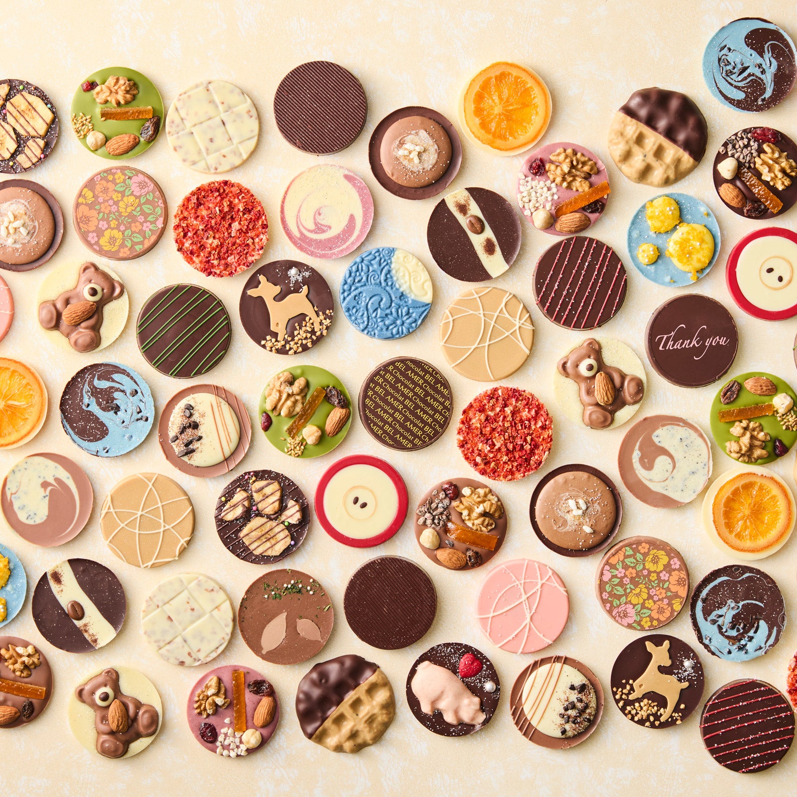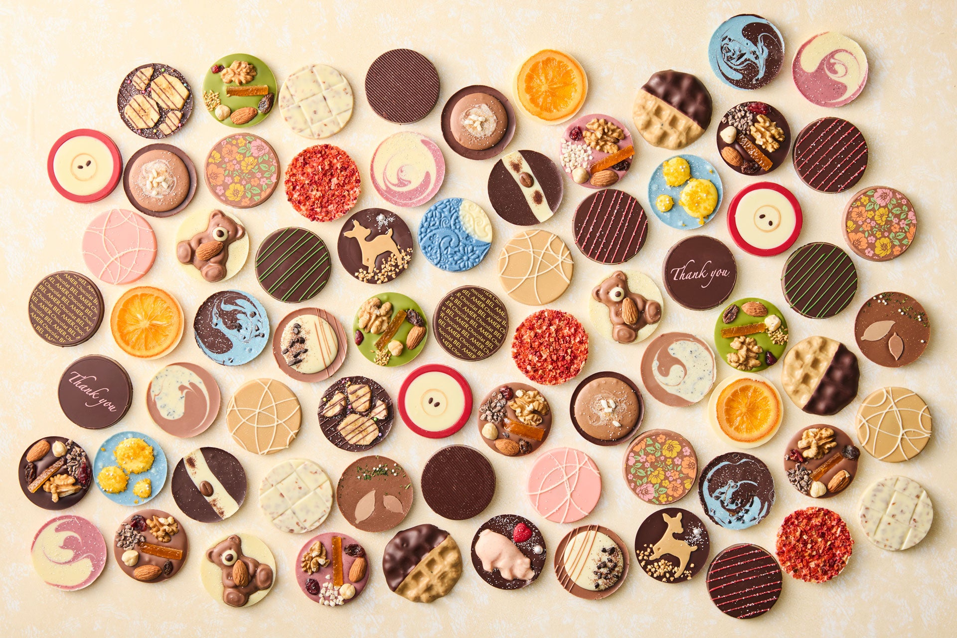 オーナメントやプレゼントなど、クリスマスらしいモチーフをふんだんに散りばめた華やかなパッケージは、見ているだけでも心躍る仕上がり。25種類のフレーバーの中には、ツリーや靴下などのモチーフをあしらった、クリスマス期間限定の特別なパレショコラも入っています。