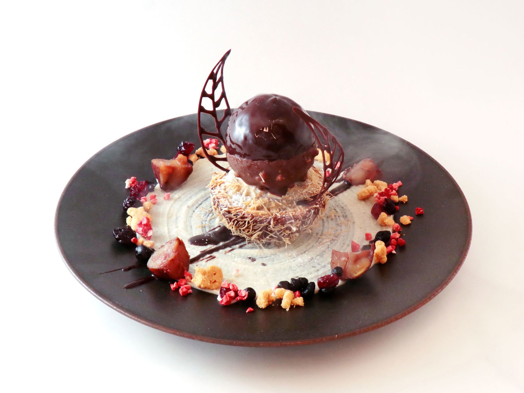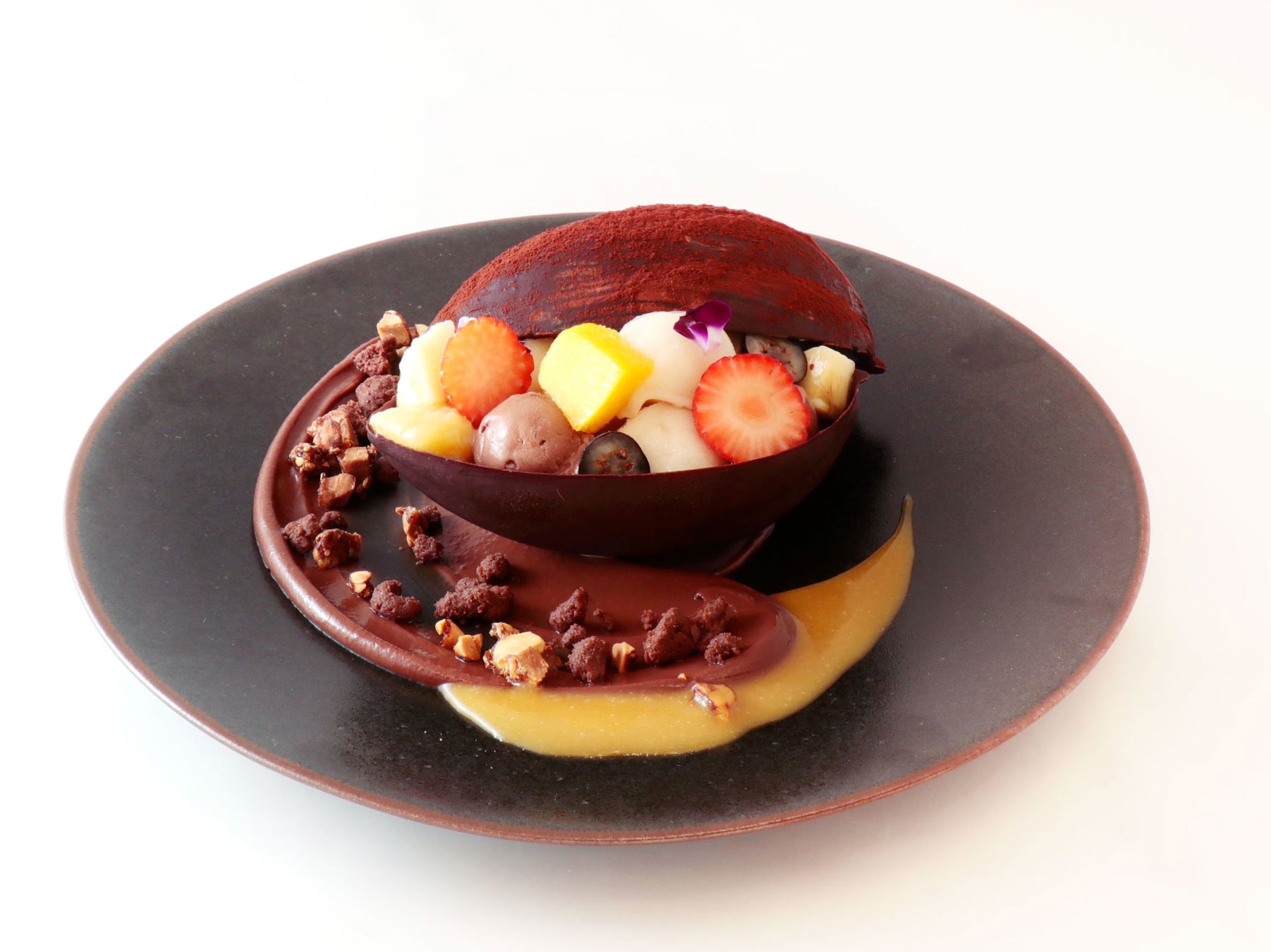 酸味やほろ苦さも感じ、ショコラがフルーツである、ということがわかるショコラ専門店ならではの一皿です。
