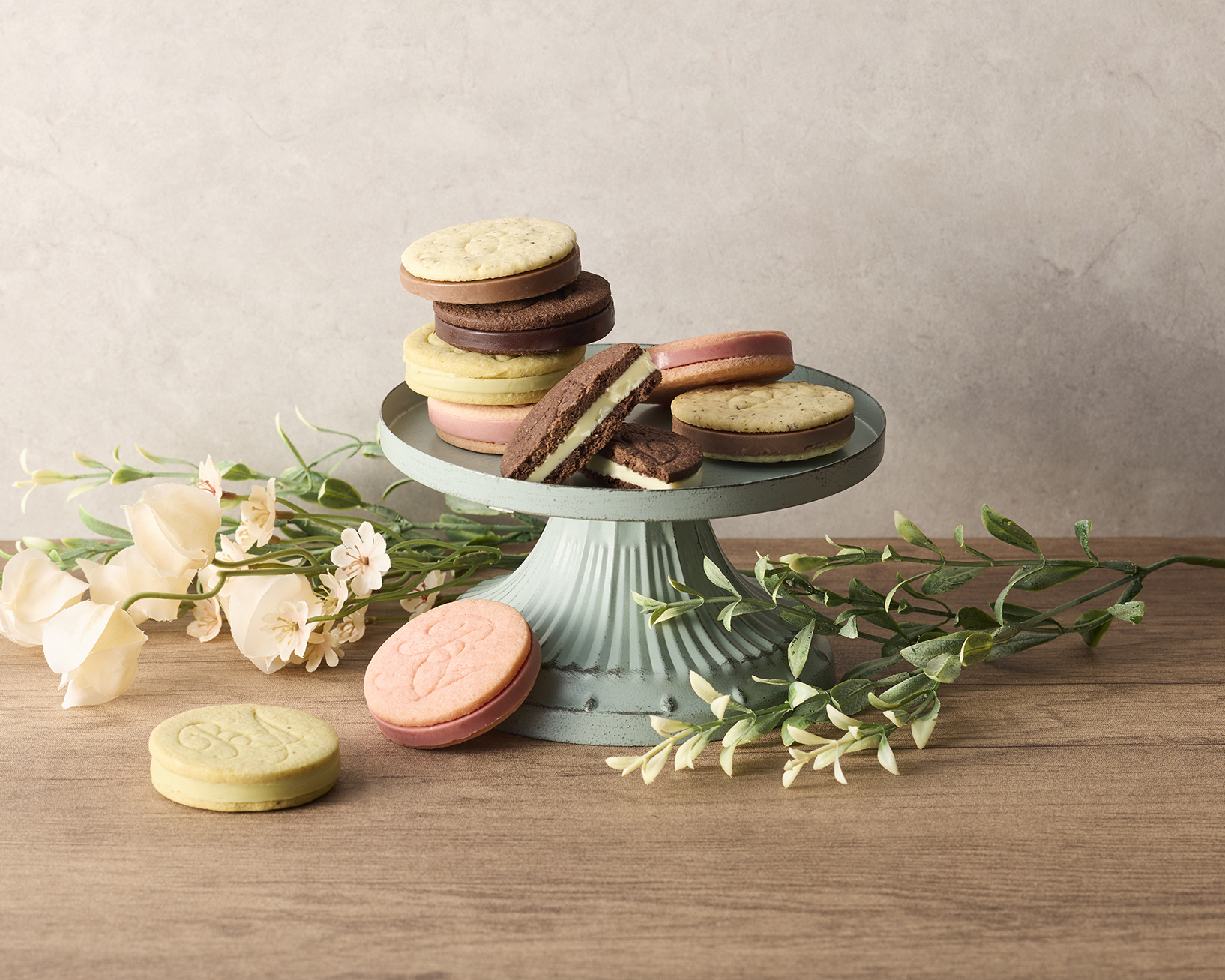 「ピスタチオ」…ピスタチオペースト入りホワイトチョコをピスタチオサブレでサンド。