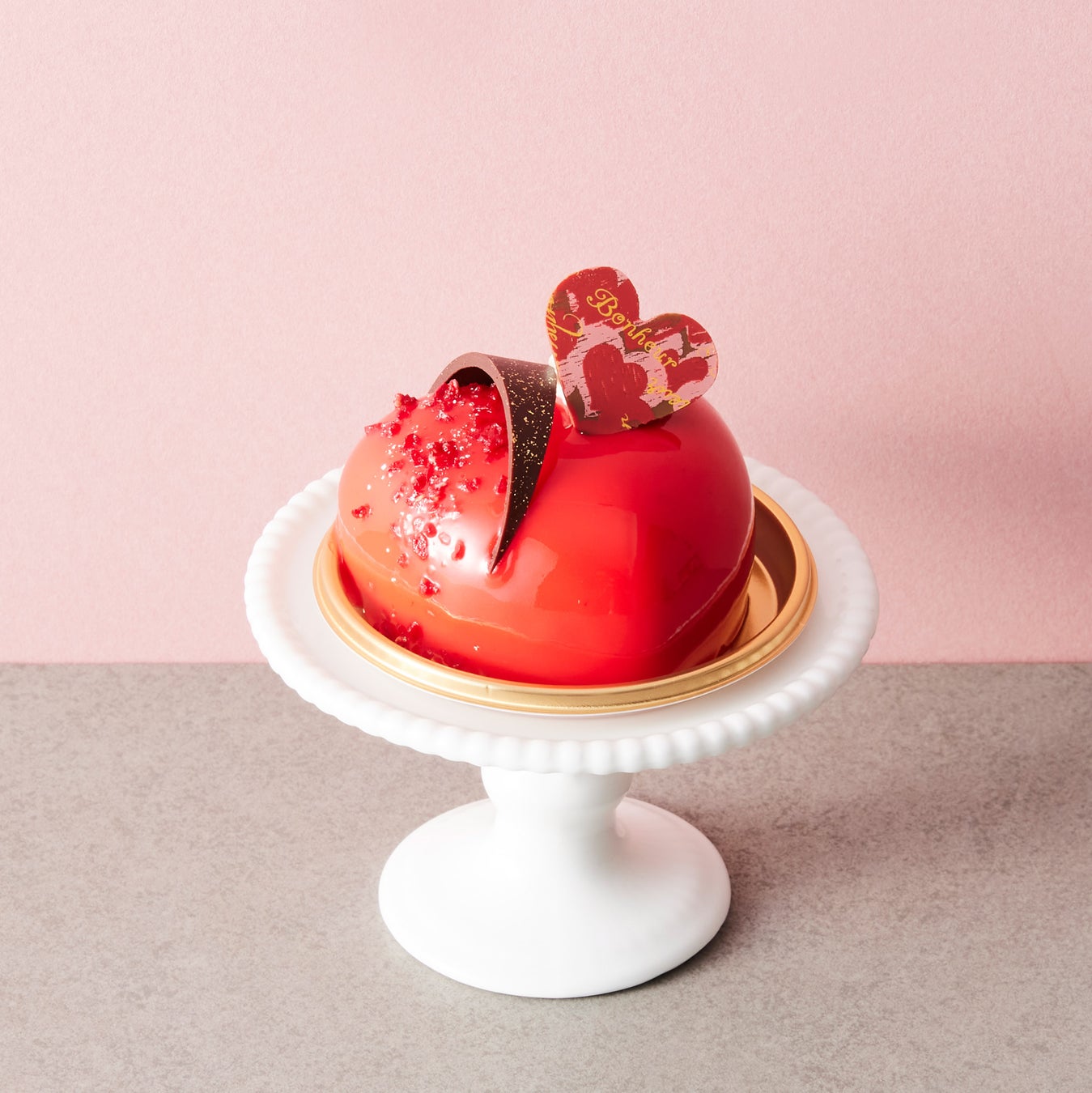 フランボワーズのパートドフリュイやパウダーをあしらった真っ赤なハートが印象的なバレンタイン限定のスペシャルなアントルメです。