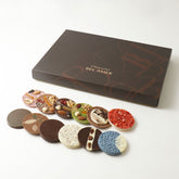 こだわりの定番フレーバーから季節限定、ときにはユーモアあふれる独特の味わいまで、毎日食べても飽きないパレショコラ。店舗では常時30種類、オンラインショップではその内15枚をご用意しております。ナッツやフルーツのトッピングだけでなく、キャラメルやジュレをしのばせたり、無限に広がるショコラ×素材の世界。