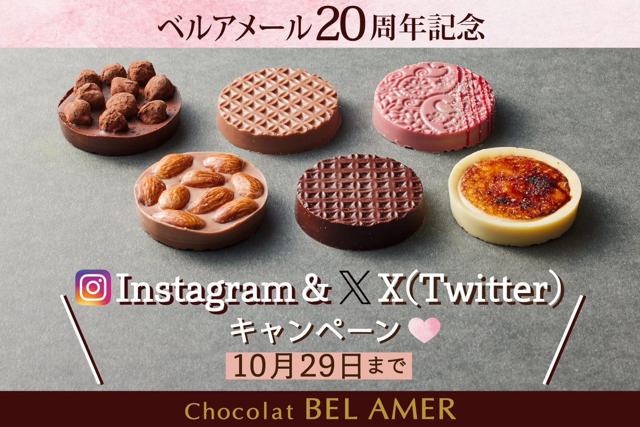 ベルアメールの20周年を記念して、公式Instagram・X(Twitter)にてよりリッチな仕上げと味わいにこだわった新作ショコラ「プレミアムパレショコラ6枚」をプレゼントするキャンペーンを実施しております。