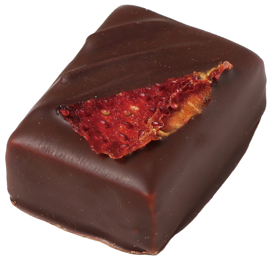 ストロベリーのミルクガナッシュをビターチョコでコーティング