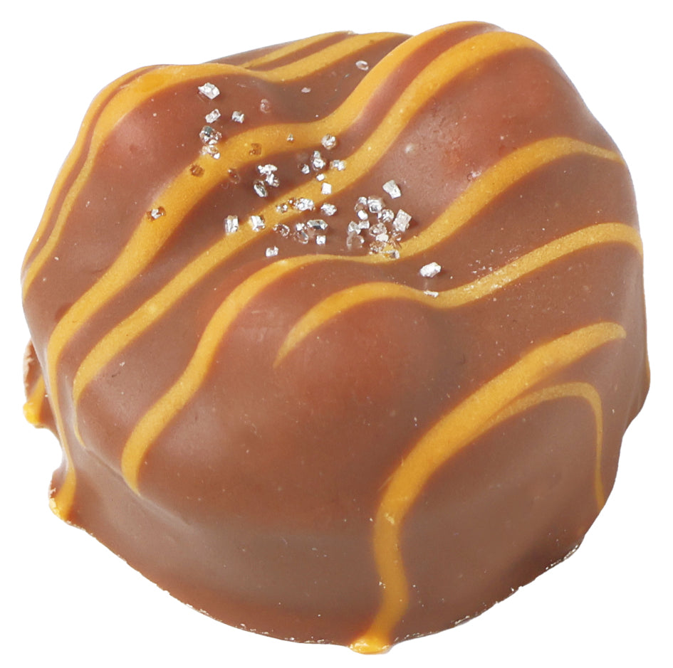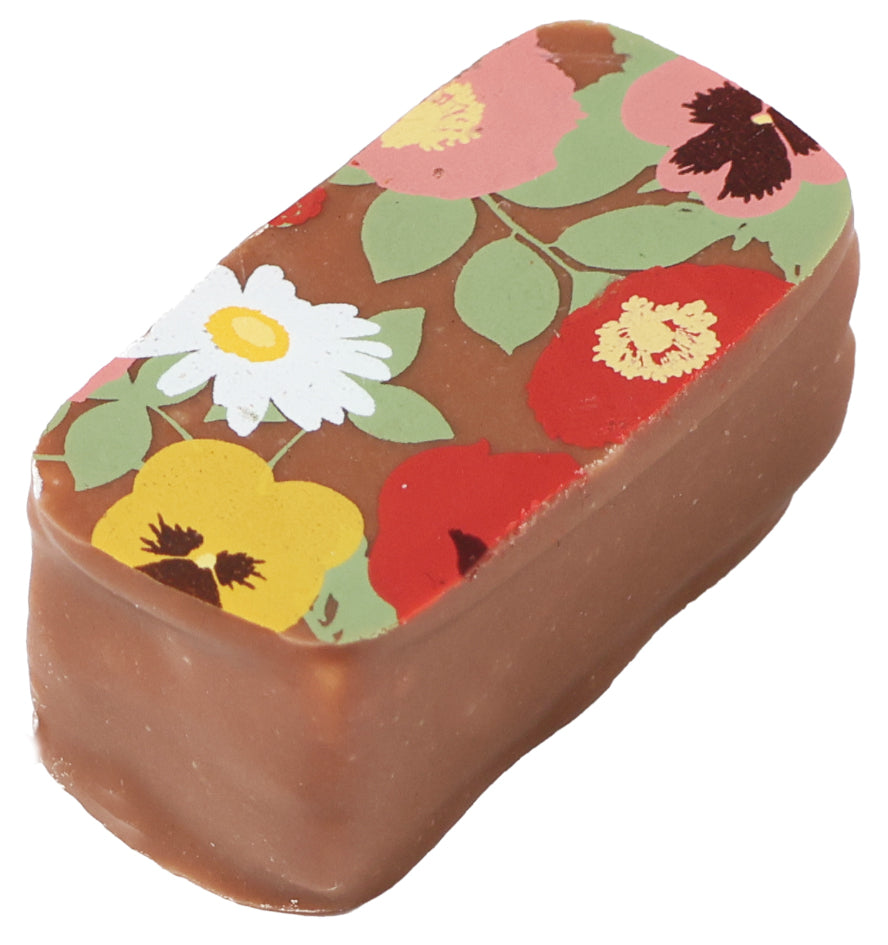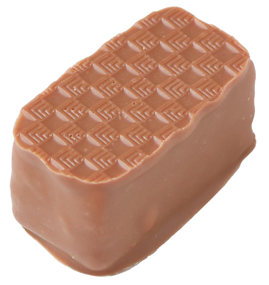 香ばしい焦がしバターの風味をアクセントにしたヘーゼルナッツプラリネ入りガナッシュをミルクチョコでコーティング
