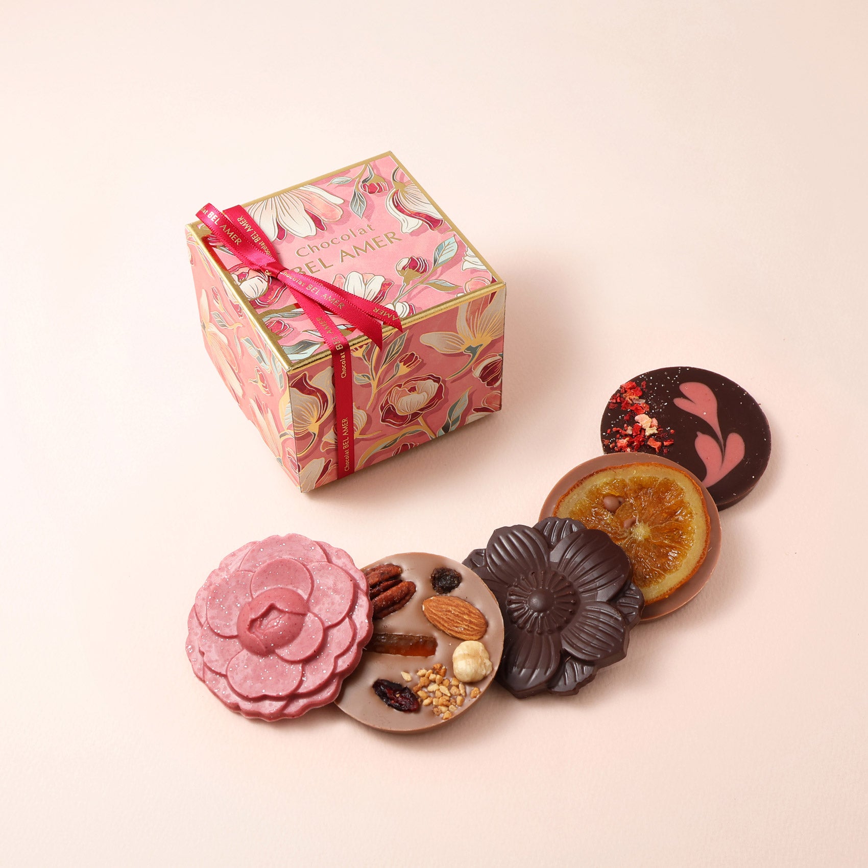手軽に楽しめるサイズ感ながら、ベルアメールならではの上質なチョコレートの味わいと美しいデザインが魅力です。¥2,808