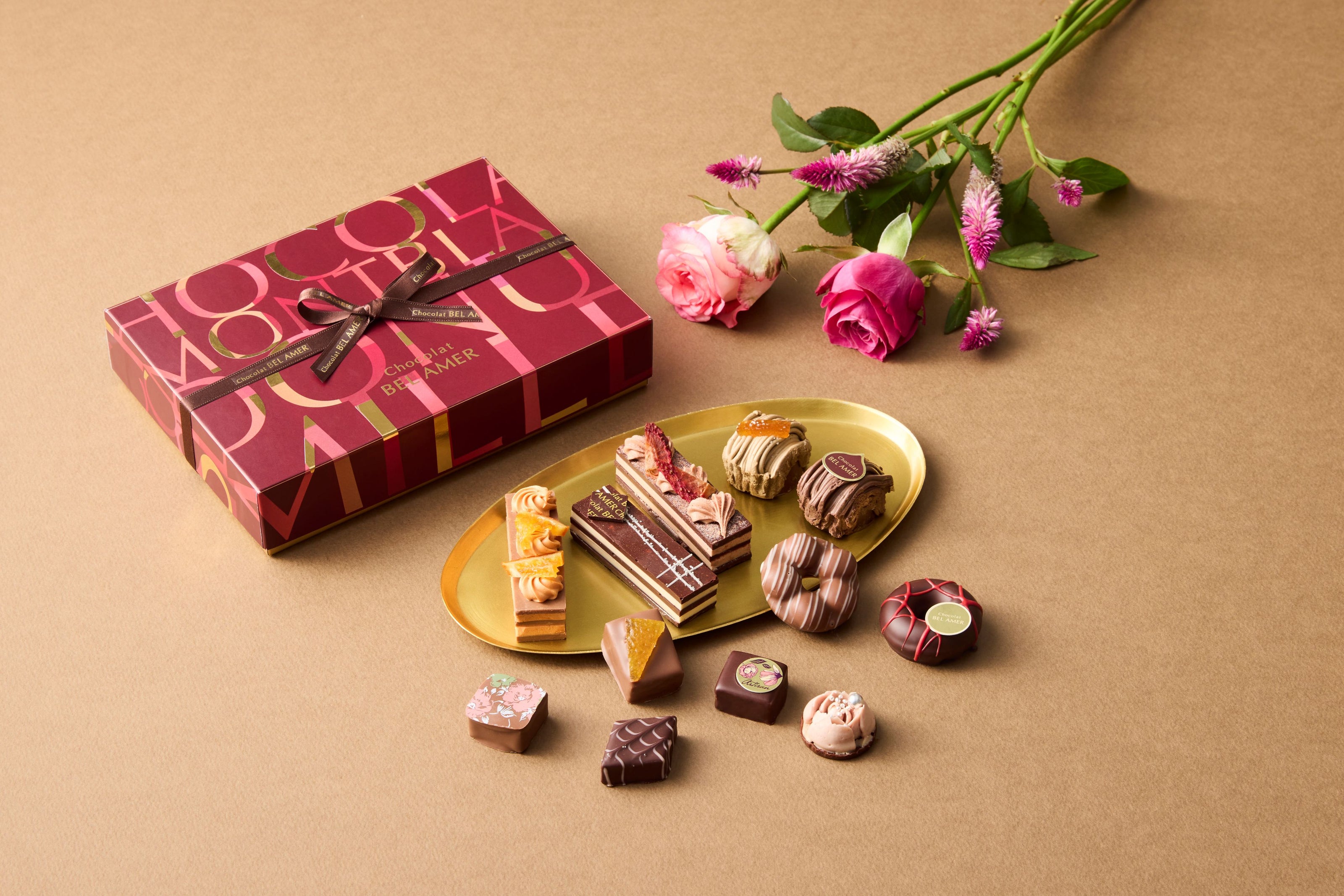 「ベルアメール」の2026 Valentine Collectionが登場!苺にこだわった華やかな苺ショコラコレクションや、クレープ・モンブラン・ミルフィーユ・ドーナツをショコラで表現したスイーツショコラなど、ベルアメールならではの多彩なチョコレートが勢揃い。