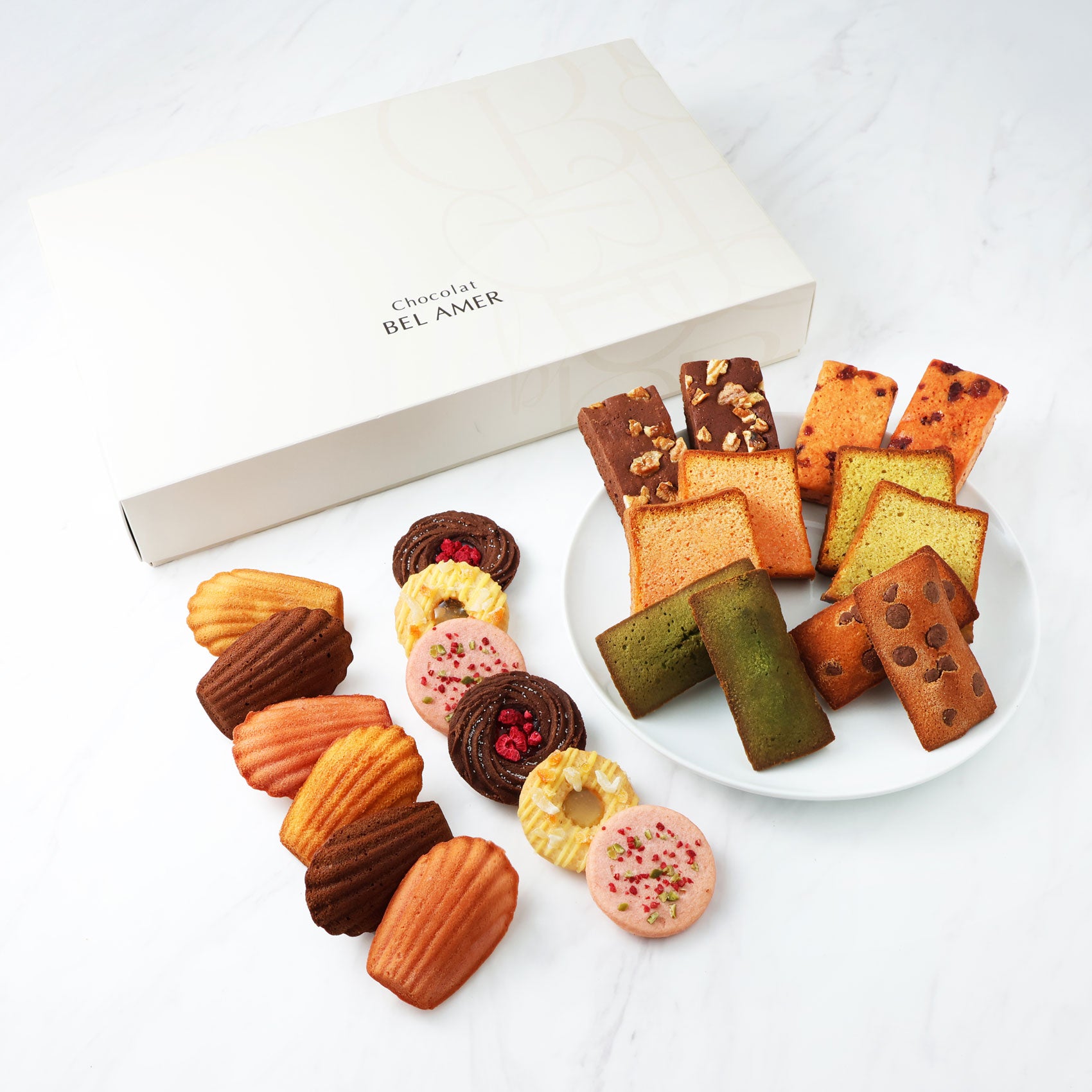 伝統的な焼き菓子をベルアメール風にショコラでアレンジしました。人気の焼き菓子24個入りの詰め合わせ。