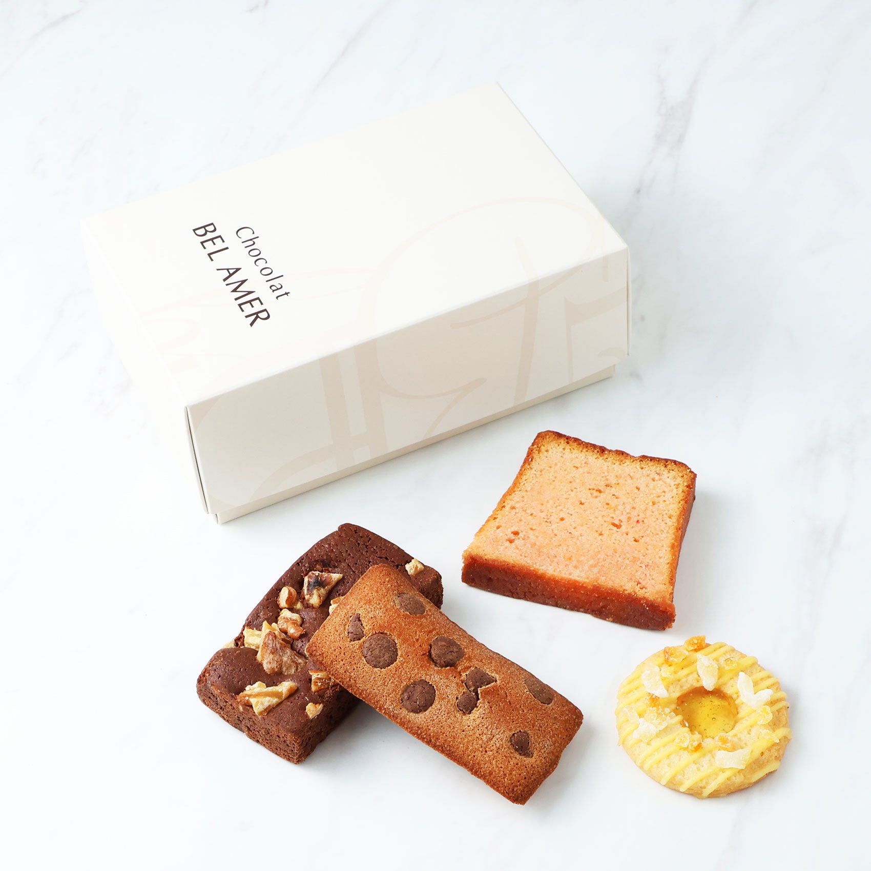 伝統的な焼き菓子をベルアメール風にショコラでアレンジしました。人気の焼き菓子4個入りの詰め合わせ。