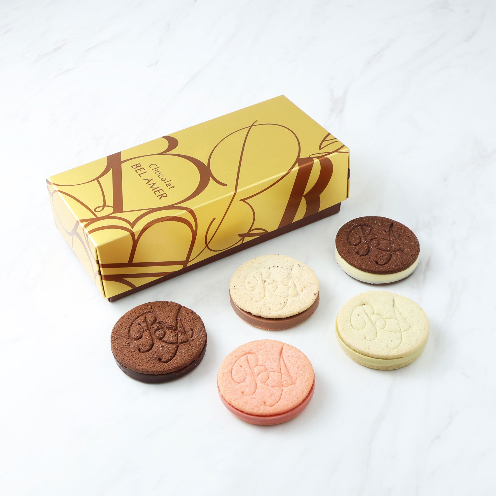 香ばしく焼き上げたサブレでなめらかな口どけのショコラを贅沢にサンドしました。口に入れた瞬間、サクッとした食感とともに上質なショコラの余韻を感じていただけます。