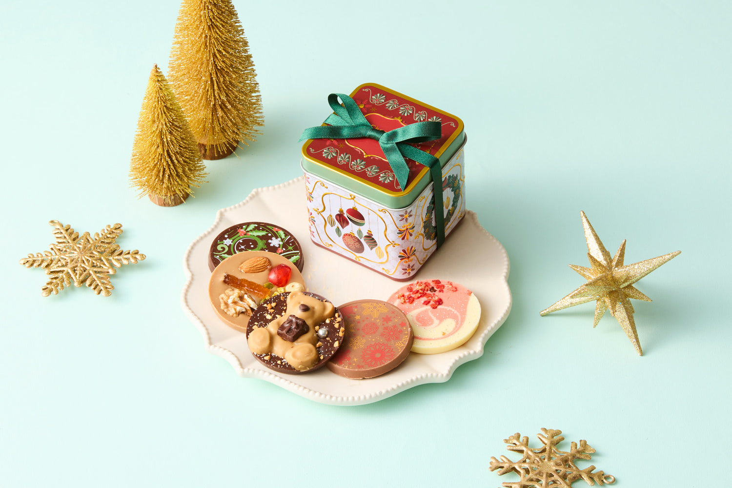 華やかなデザイン、5種それぞれのチョコレートと素材の組み合わせと、クリスマス限定デザインの可愛らしい缶も併せてお楽しみください。