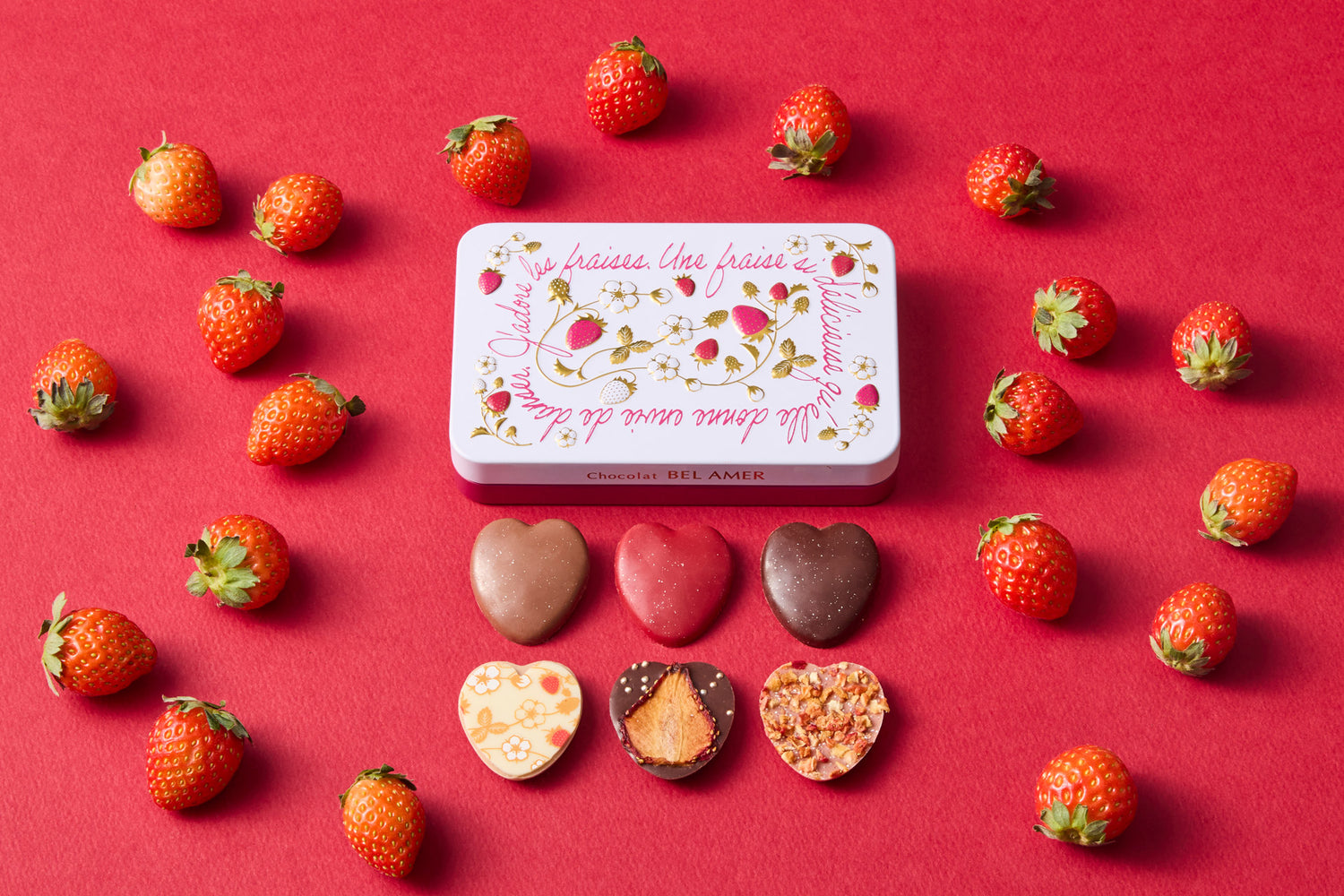 限定デザイン缶に入った、6種の苺チョコをお楽しみください。