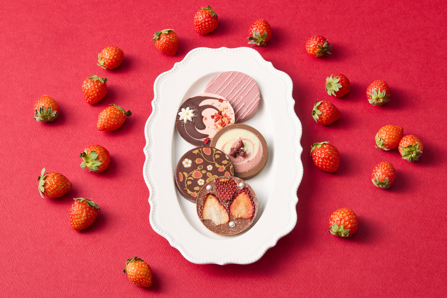 苺の顆粒やピューレなどを使用した、5種類の苺風味のパレショコラをお楽しみください。